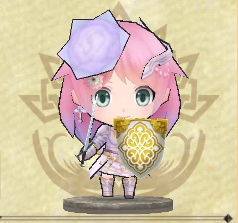 | Profil | Un membre du « Chœur Sacré », l'un des dix-sept ordres sacrés. Elle est considérée comme une chanteuse dans l'ordre et sa voix a la capacité magique d'inspirer et d'encourager ses alliés à faire de leur mieux sur le champ de bataille. Beaucoup de chevaliers et de civils sont secrètement fans d'elle. |